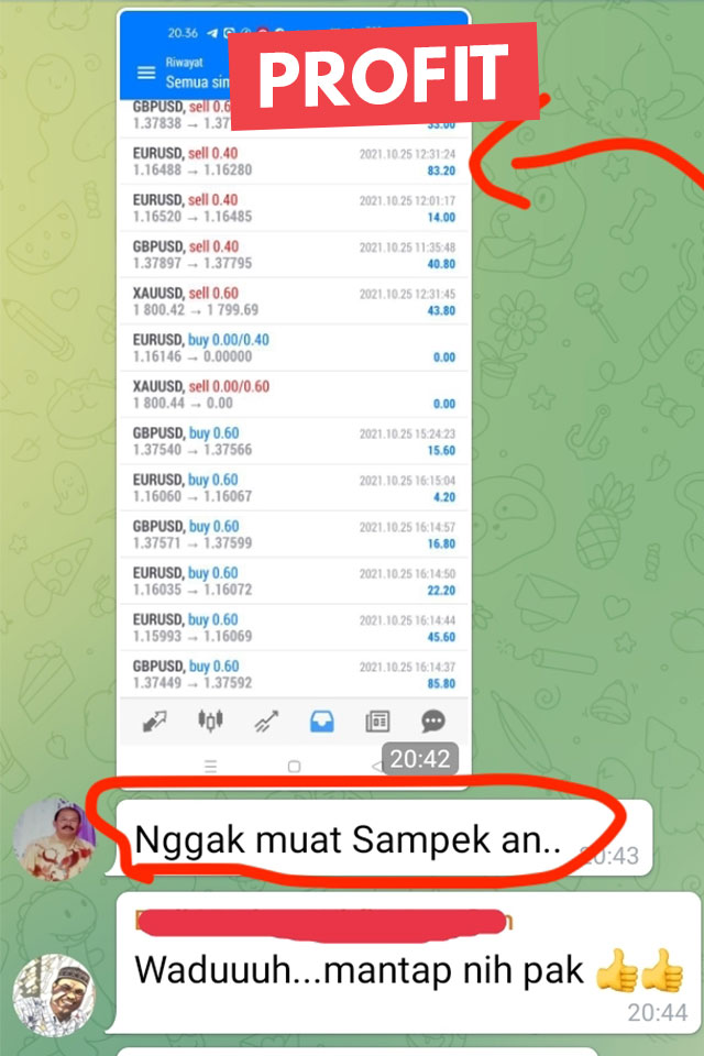 Trading forex bukan program untuk cepat kaya, trading forex sama seperti bisnis lainnya yang memerlukan keterampilan untuk bisa berhasil menjalankannya. Hasil yang didapatkan tiap individu akan bervariasi.